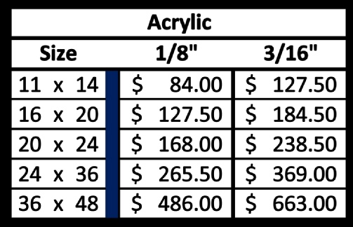 CUSTOM SIZES UP TO 10 FEET LONG ARE POSSIBLE
